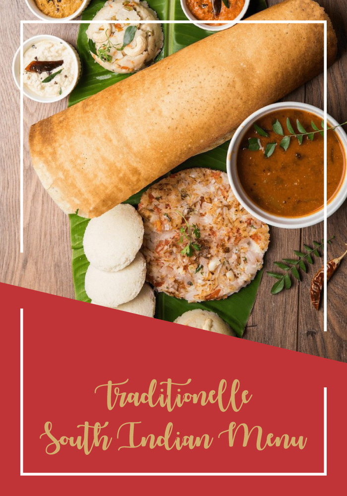 Savoury crepe of fermented lentil and rice batter, served with Sambar and 2 Chutnies.